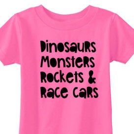kids tshirt, dinosaurs monsters rockets and race cars, funny boy shirt, toddler girl tee, birthday shirt, gifts for boys gift for girls