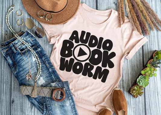 Audio book worm tee