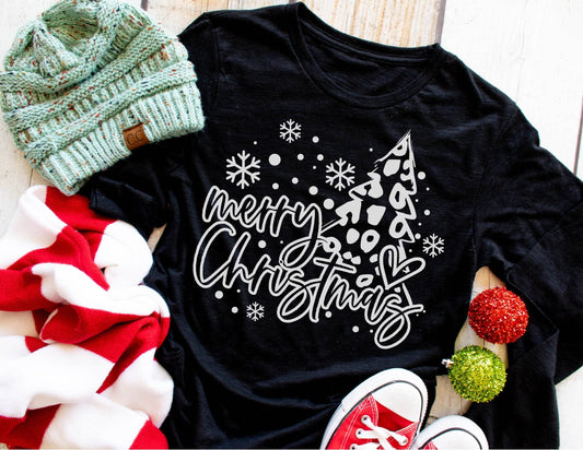 Merry Christmas Leopard tree short sleeve tshirt